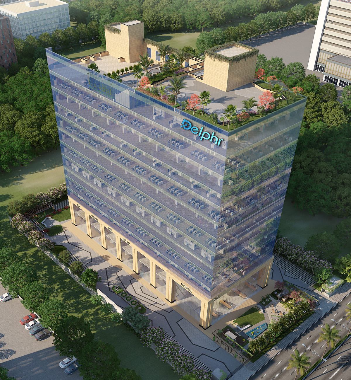 Delphi Tower brings a signature office address on the Noida Expressway that offers a dynamic work place which encourages productivity and sustainability for modern businesses.